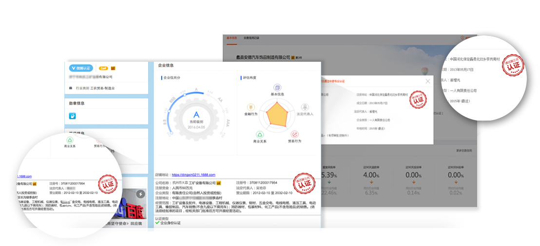 在经过企业授权后 第三方认证公司会对企业合法性进行认证 并有一定的信用积累