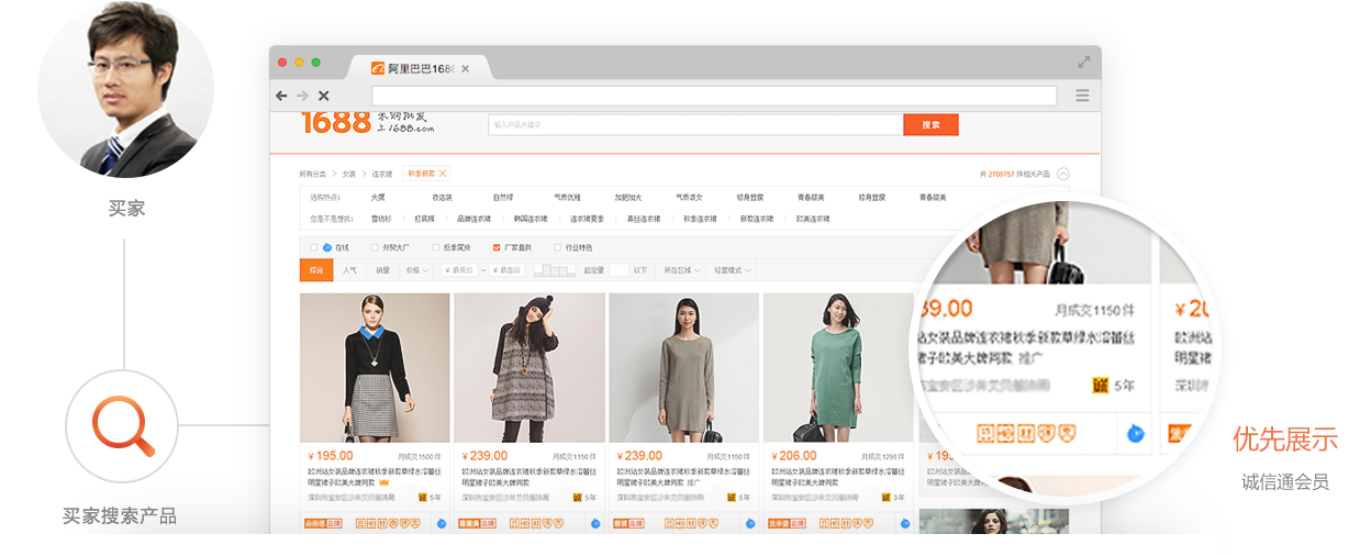 1688平台搜索公司或产品关键词,优先展示